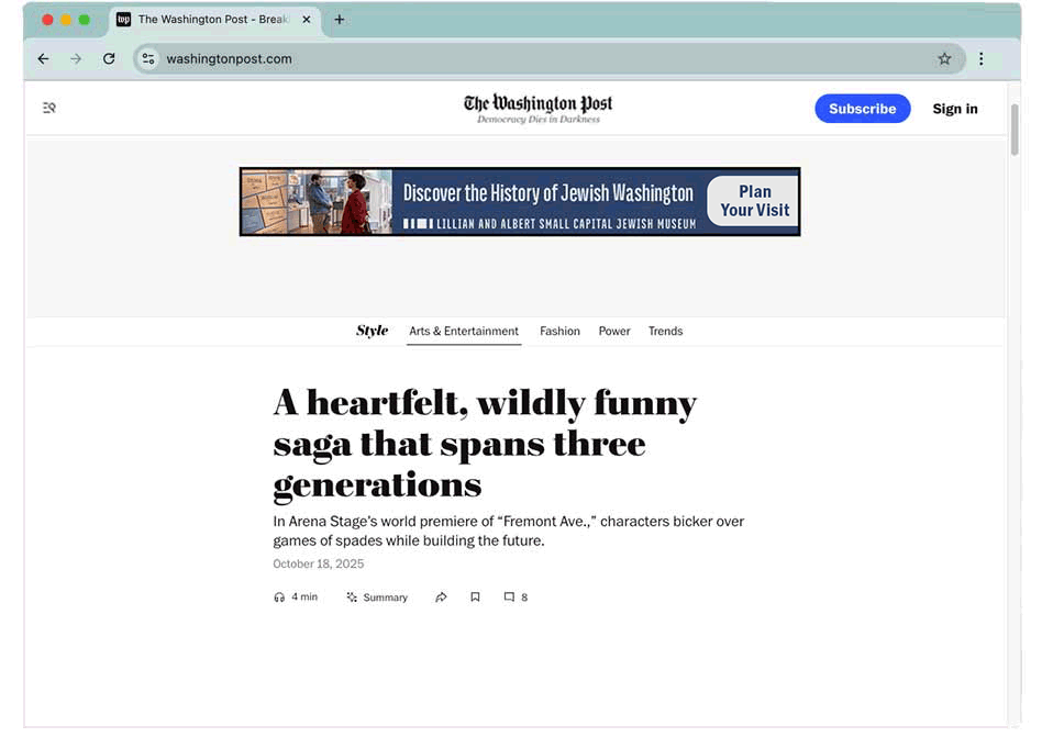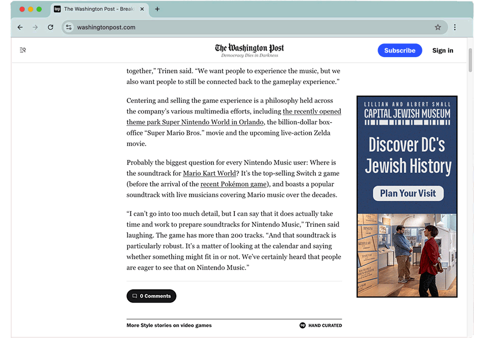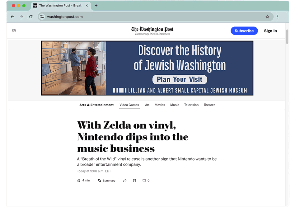 These animated banner ads featuring the permanent exhibition at the Capital Jewish Museum ran on the Washington Post website in the fall and helped usher in record high attendance numbers.